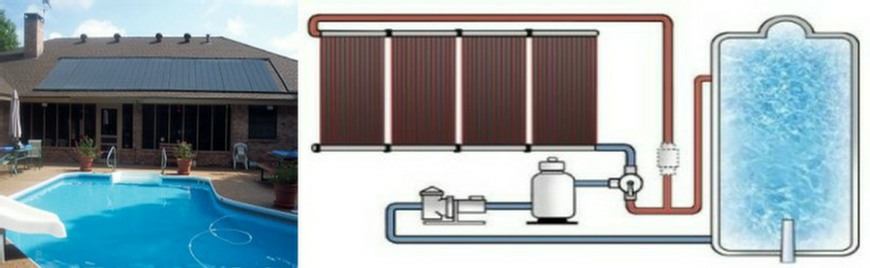 Water is then circulated up to the solar panels using the swimming pool’s normal pump and filter system.